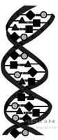 На рисунке 1 — ДНК; на рисунке 2 — спираль — вторичная структура белка; на 3 рисунке — глобула — третичная структура белка. На 4 рисунке изображена тРНК (транспортная РНК), которая доставляет аминокислоты к рибосоме во время биосинтеза белка. На рисунке 5 — АТФ (аденозинтрифосфат). ДНК, тРНК и АТФ имеют в своём составе азотистое основание — аденин.