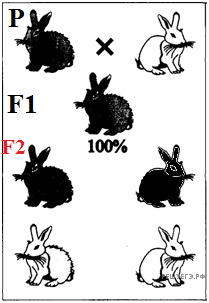 Рассмотрите рисунок. Определите доминантные признаки у кроликов (темная или белая окраска, гладкая или мохнатая шерсть), генотипы родителей и гибридов первого поколения, генетический закон, проявляющийся во втором поколении.