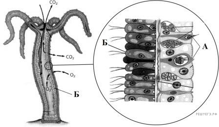 Назовите изображённый на рисунке организм и тип, к которому его относят. Что обозначено буквами А и Б? Назовите функции указанных клеток.