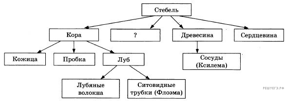 Часть в стебле растения между древесиной и лубом — камбий — образовательная ткань в стеблях и корнях голосеменных и двудольных растений, благодаря которой происходит рост стебля в толщину.