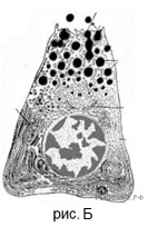 Экспериментатор решил исследовать поглощение йода разными тканями организма. Перед началом эксперимента он исследовал под электронным микроскопом клетки щитовидной железы и сделал рисунок одной из них (рис. А). В ходе эксперимента мышам вводили инъекции, содержащие изотопы йода I131. Через определённое количество времени экспериментатор снова изучил клетки железы под микроскопом и сделал рисунок (рис. Б). На снимках с электронного микроскопа изотопная метка даёт контрастную чёрную окраску структурам, в которые она встраивается. Какой параметр задаётся экспериментатором (независимая переменная), а какой параметр меняется в зависимости от этого (зависимая переменная)? В состав каких клеточных органоидов встроилась радиоактивная метка? Какой гормон щитовидной железы имеет в своём составе йод и какова его функция?