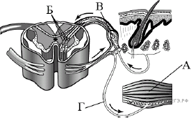Какой буквой обозначен на рисунке чувствительный нейрон?