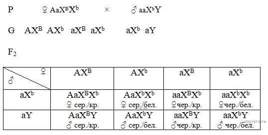 При скре­щи­ва­нии двух дро­зо­фил с серым телом и крас­ны­ми гла­за­ми в потом­стве по­явил­ся самец с чер­ным телом и бе­лы­ми гла­за­ми. Этого самца скре­сти­ли с ро­ди­тель­ской осо­бью. Опре­де­ли­те, какая часть самок из числа самок потом­ства вто­ро­го скре­щи­ва­ния сов­па­да­ют с фе­но­ти­пом ма­те­ри. Опре­де­ли­те, ге­но­ти­пы ро­ди­те­лей в пер­вом и во вто­ром скре­щи­ва­ни­ях. Какие за­ко­ны на­след­ствен­но­сти про­яв­ля­ют­ся в дан­ном слу­чае?