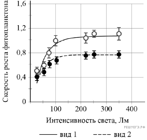 Проанализируйте график «Зависимость скорости роста фитопланктона от интенсивности света».