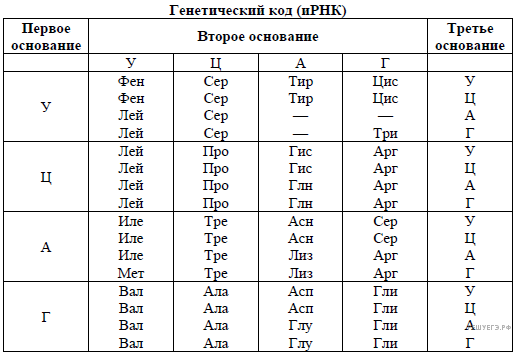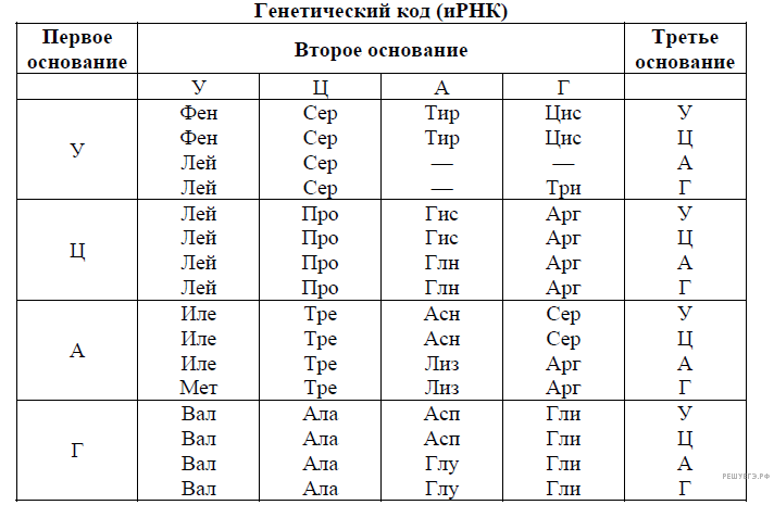 Для выполнения задания используйте таблицу генетического кода.