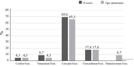 3) Умеренную боль при движениях испытывает меньше пациентов, чем в покое.