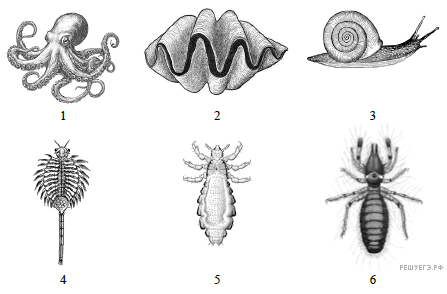 Под каким номером на рисунке обозначен организм, тело которого покрыто мантией?