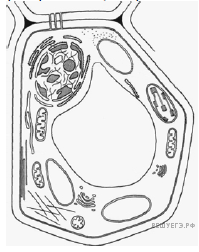 Все перечисленные ниже признаки, кроме трёх, используются для описания изображённой на рисунке клетки. Определите три признака, «выпадающих» из общего списка, и запишите в таблицу цифры, под которыми они указаны.